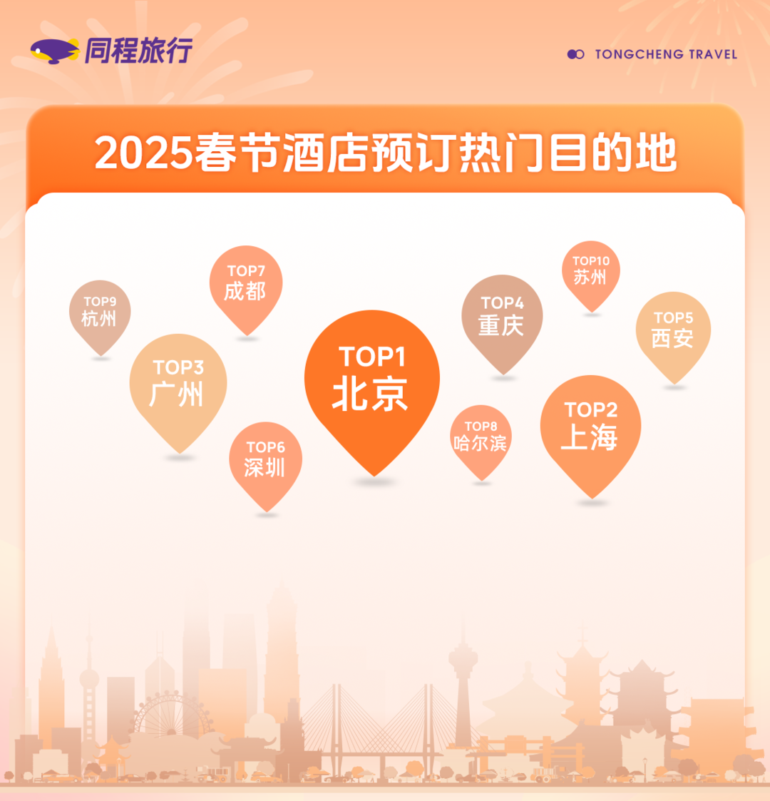 春节期间,北京不仅推出5600多场文旅活动,还向游客发放非遗漫游地图、庙会地图等,让市民游客深度体验北京的非遗之美。苏州则汇集全国200多项非遗项目和传承人,举办首届“姑苏年市·新春非遗游园会”。这些活动吸引了大量游客的同时,也带动了当地酒店预订上涨。数据显示,截至目前,北京、上海、广州、重庆、西安、深圳、成都、哈尔滨、杭州以及苏州是春节假期国内酒店预订热度较高的目的地。